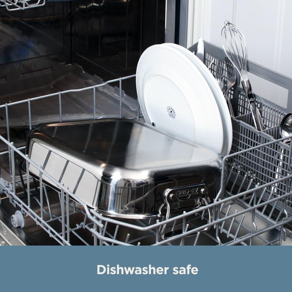 - This All-Clad Large Stainless Steel Roaster with Rack, 13 x 16 inch provides ample space for all your roasting needs, ensuring you can cook large cuts of meat or multiple dishes simultaneously.