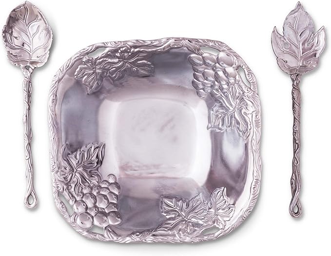 Arthur Court Designs Metal 3-Pc Grape Salad Set Bowl and Server in Grape Pattern Sand Casted in Aluminum with Artisan Quality Hand Polished Design Tarnish-Free 9.5 Inch Diameter