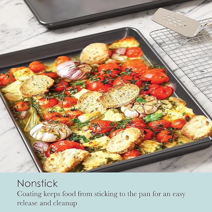 - IDEAL FOR BAKING MULTIPLE DISHES: The Chicago Metallic Non-Stick Baking Sheet Set is ideal for all types of baking and cooking. Have the flexibility to bake jelly rolls, bars, cookies, one-sheet pan meals, roast vegetables or reheat leftovers