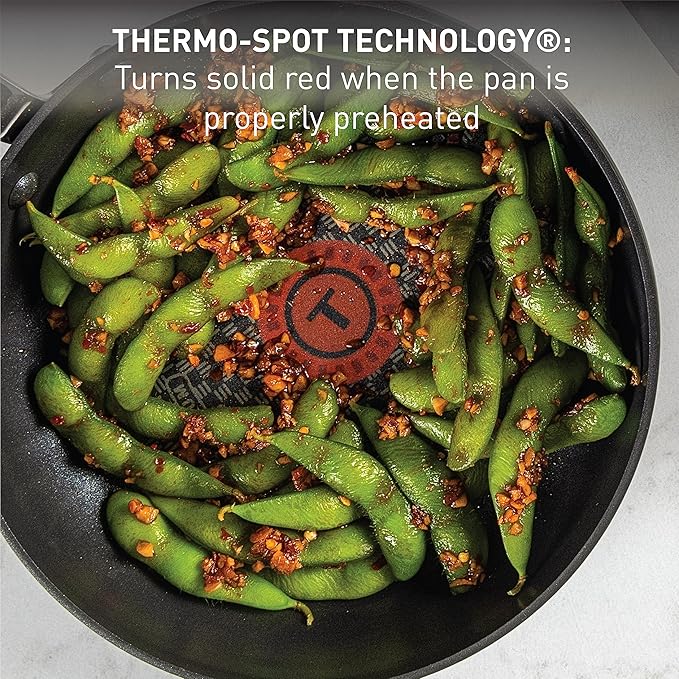 - Thermo-Spot Technology: Unique heat indicator turns solid red when pans are properly preheated so you'll know exactly when to start cooking for perfect results every time.