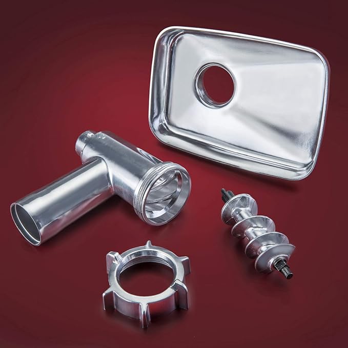 - This Magnum 1800W “Platinum Edition” Grinder also Includes: 1-Polished Aluminum Grinding Head and High Capacity Meat Tray, 3 - 304 Grade Stainless Steel Cutting Blades, 5 - Sizes of Grinding Plates, 1 - Sausage Stuffing Plate, 3 - Sizes of Sausage Stuffing Tubes (1/2", 5/8" & 3/4"), 1 - Kubbe/Kibbe Making Attachment & 1 - Easy to Use Palm Meat Pusher/Stuffer, a pair of Meat Claws & Burger-Slider Press.