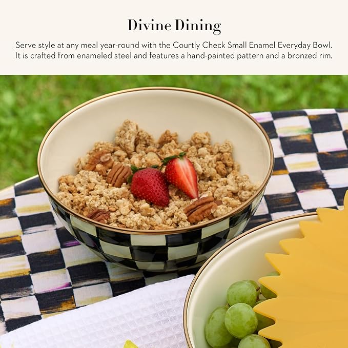 MACKENZIE-CHILDS Enamel Everyday Bowl, Serving Bowl for Entertaining, Small, Black-and-White Courtly Check, Set of 1