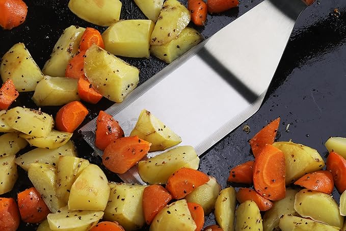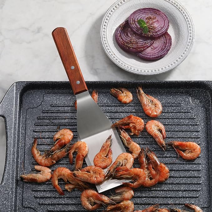 - Exceptionally well crafted solid and perforated turner set|Commercial quality can be used In restaurants food shops catering halls Etc.|Stainless steel blade with wooden handle securely riveted|Easy to clean and hand wash