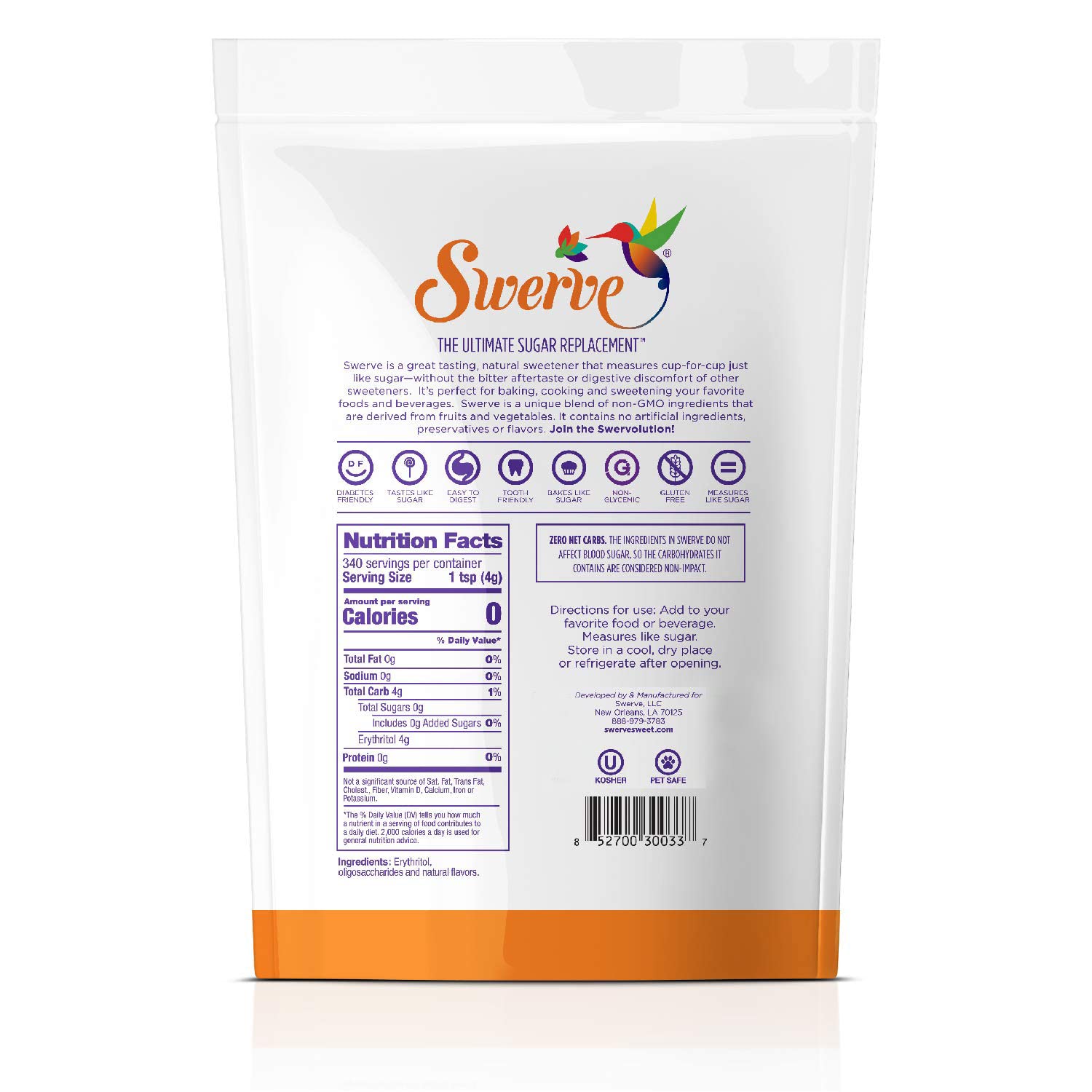 - ZERO NET CARBS: The ingredients in Swerve do not affect blood sugar, so the carbohydrates it contains are considered non-impact.