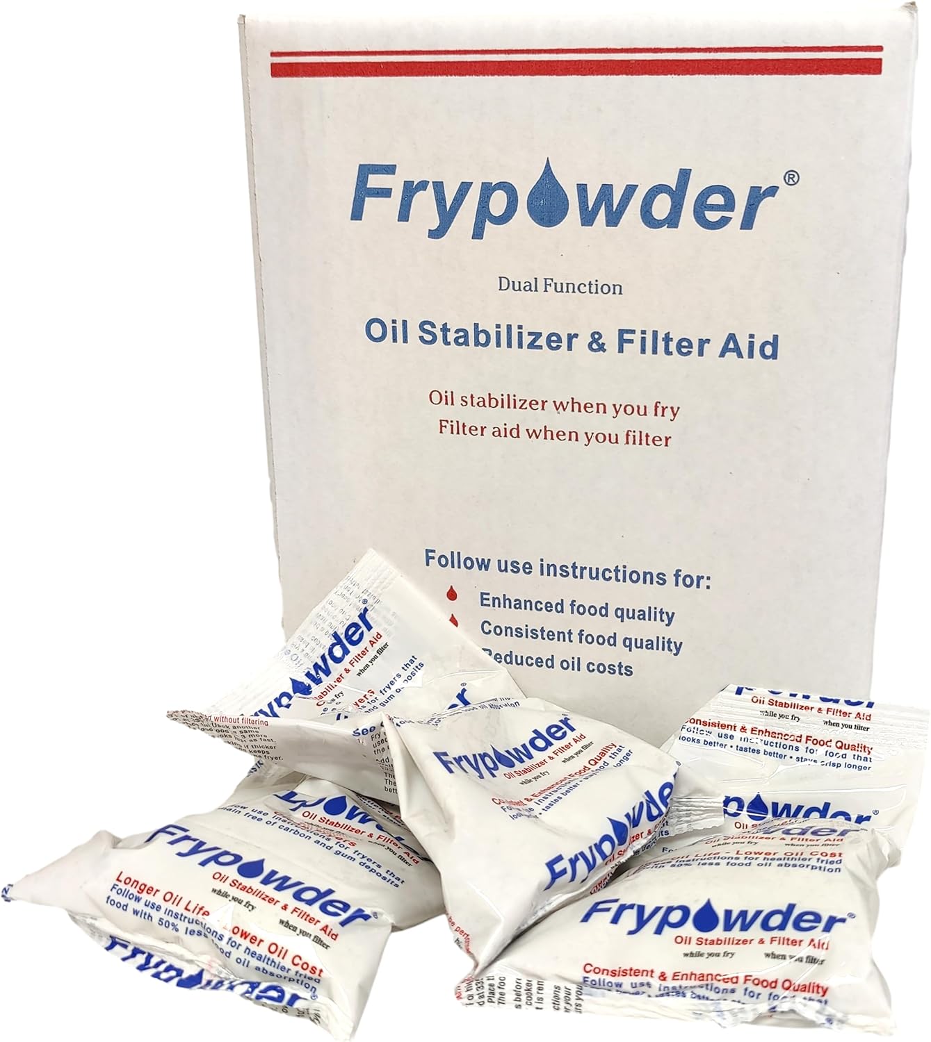 - OIL STABILIZER WHEN YOU FRY, FILTER AID WHEN YOU FILTER - With FryPowder Oil Stabilizer Filter Aid, food cooks with consistent and enhanced quality. This essential cooking oil stabilizer helps maintain the integrity of your frying oil, deep fryer oil, and deep frying oil, preventing breakdown reactions and protecting cooking performance.