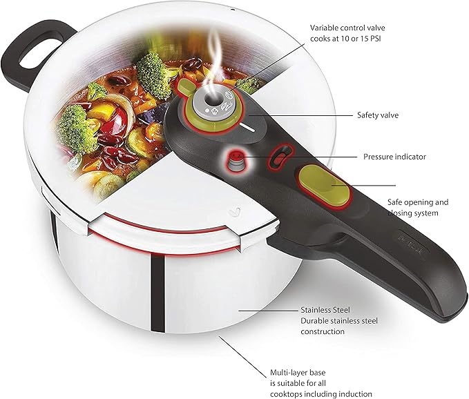 T-fal Ultimate Stainless Steel Pressure Cooker 6.3 Quart, Induction Compatible, Secure Locking Lid, Safe & Easy to Use, Cookware, Pots and Pans, Kitchen, Dishwasher Safe, Silver