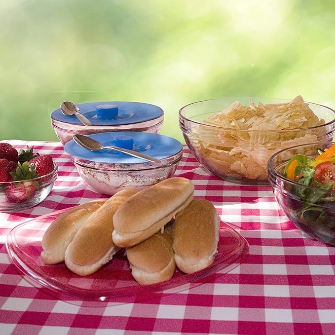 - YOU'LL LOVE HOW HANDY THESE ARE - Use them for the microwave, stove, oven, fridge or to serve food at the table indoors or outside. Our lids fit most smooth rimmed containers including stainless metal plastic and glass. You get a universal fit for cups, mugs, pots, fry pans, glasses and bowls up to 10”. Safe for cooking and food storage from -40F to 450F in sizes 5" 6" 7" 7.8" and 10.2".