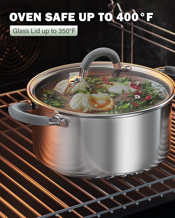 - Multi-Stove Compatible: The Stainless steel cookware is induction compatible and works on gas, electric, glass, ceramic, halogen, and more; Oven safe up to 400β, lids up to 350β; Dishwasher safe for easy cleaning