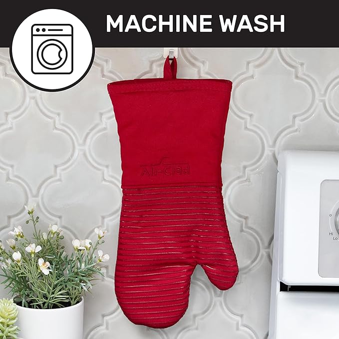 - MACHINE WASHABLE: All Clad's Silicone Oven Mitt Set is machine washable for hassle-free cleaning