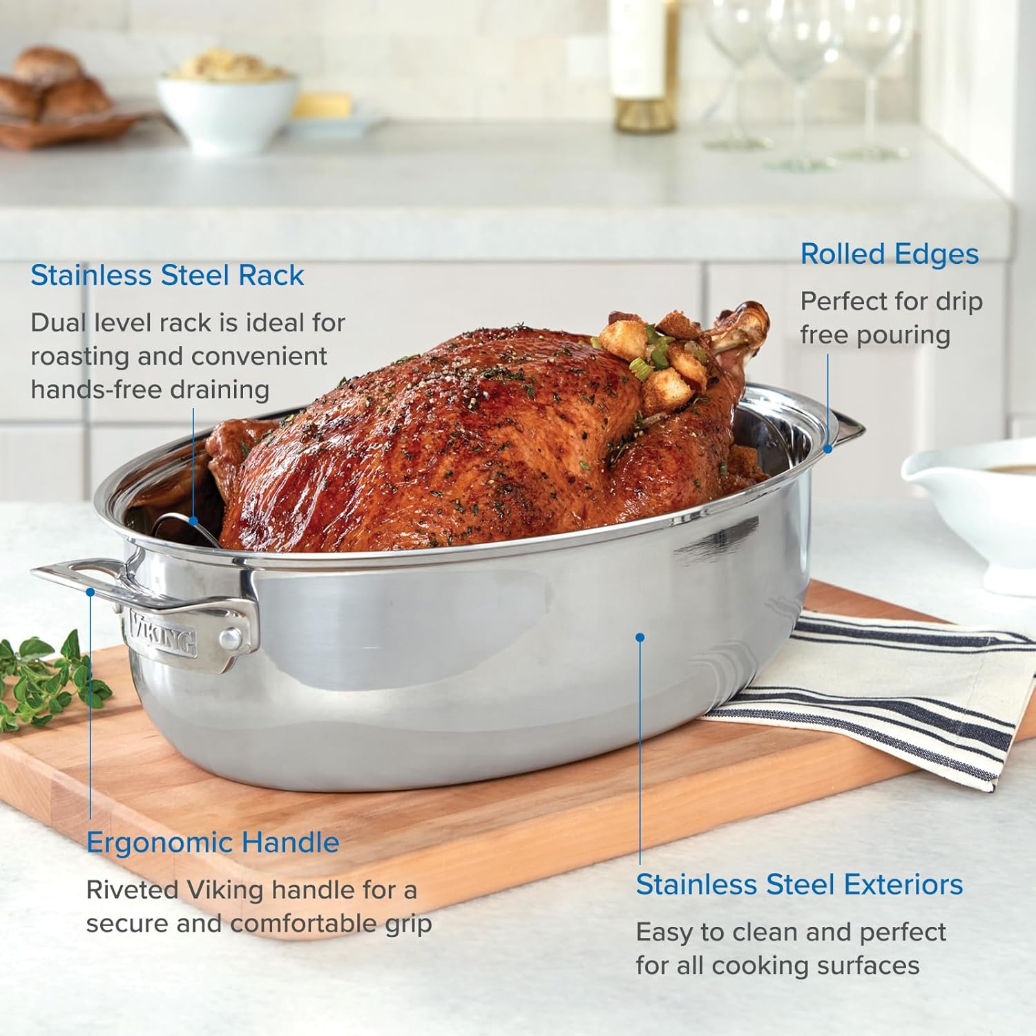 - GREAT GIFT FOR COOKING ENTHUSIASTS: Our stainless steel roasting pans make for excellent gifts for the chef in your life. Viking offers a large assortment of cookware, baking supplies, utensils, and other kitchen accessories. Whether you are looking for cast iron pieces, non stick pans, or high quality cookware, Viking has something for both novice and professional chefs to fall in love with. Our metal roasting pans are backed by a limited lifetime warranty
