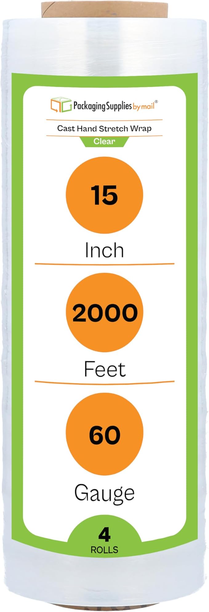 - SPECS - You will receive 4 rolls of clear stretch wrap. Each roll is 15 inch tall by 2,000 feet in length. Thickness is 60 gauge.