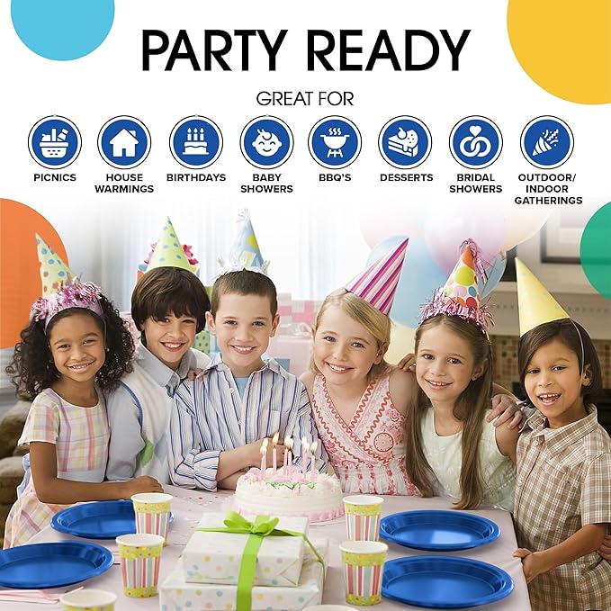 - Health & Safety: Our Dark Blue plastic plate set is made with food safe materials, ensuring the health and safety of your guests. Whether it's for a birthday party or a picnic, you can trust that these disposable plastic plates meet the highest standards of hygiene, providing peace of mind for you and your loved ones.