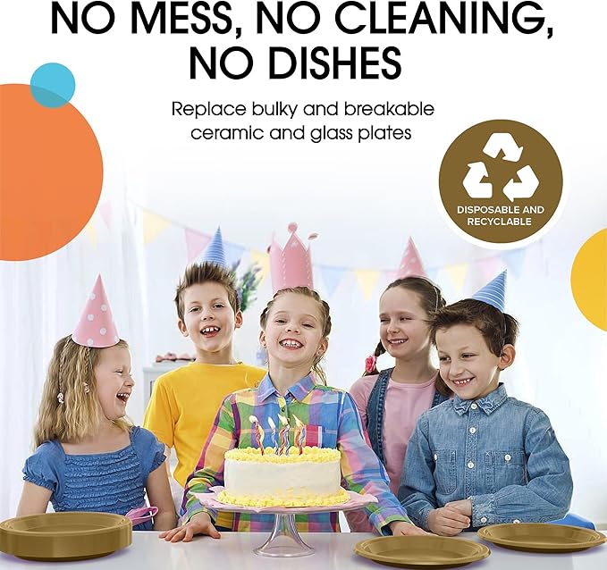 - Health & Safety: Our Gold plastic plate set is made with food safe materials, ensuring the health and safety of your guests. Whether it's for a birthday party or a picnic, you can trust that these disposable plastic plates meet the highest standards of hygiene, providing peace of mind for you and your loved ones.