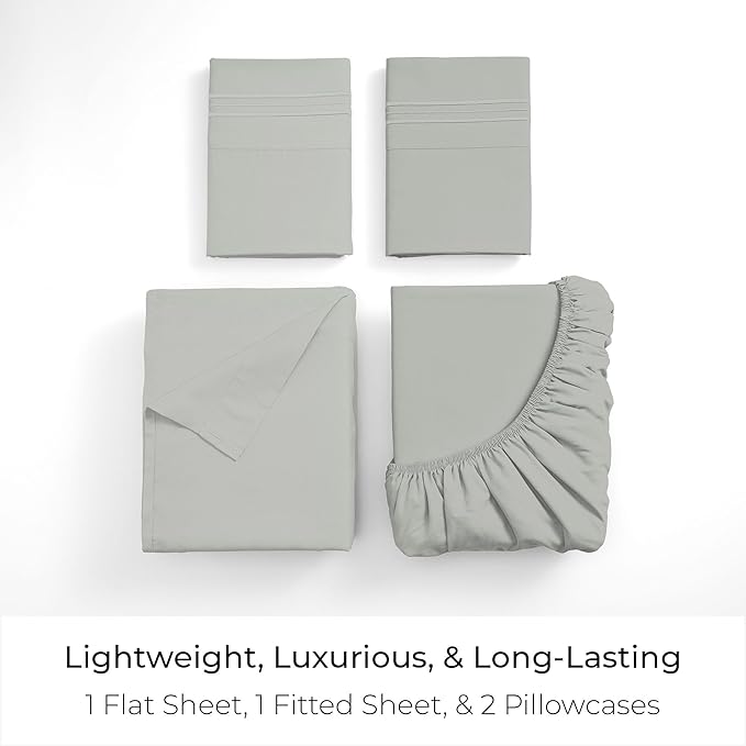 - Complete 4-Piece Queen Bedding Set - Includes 1 Fitted Sheet (80"x60"x16"), 1 Flat Sheet (102"x90"), & 2 Pillowcases (20"x30") - all crafted from double-brushed microfiber for an ultra-soft feel. Temperature-regulating to keep you cozy in winter and cool in summer.