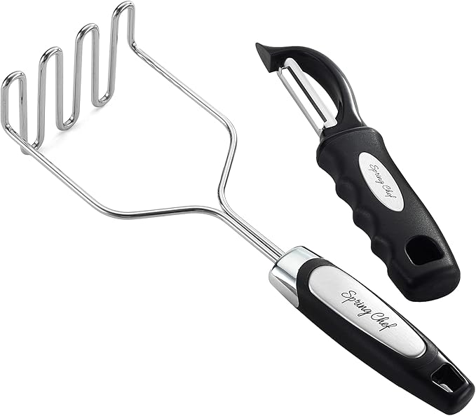 Spring Chef Stainless Steel Potato Masher with Premium Vegetable Peeler, Mashed Potato Masher - Kitchen Tool with Soft Non-slip Handle, Metal Food Masher for Fruit, Avocado, Bean, Guacamole, Banana