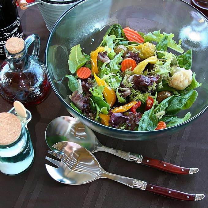 - Attractive Design: Serve your salads with style and flair with this pair of 10.5” L x 3"W stainless-steel salad spoon and salad forks with rosewood handles. French Home's traditional and elegant Laguiole Salad serving utensils set has a comfortable to hold three rivet curved handle with the iconic French bee emblem on its bolster.