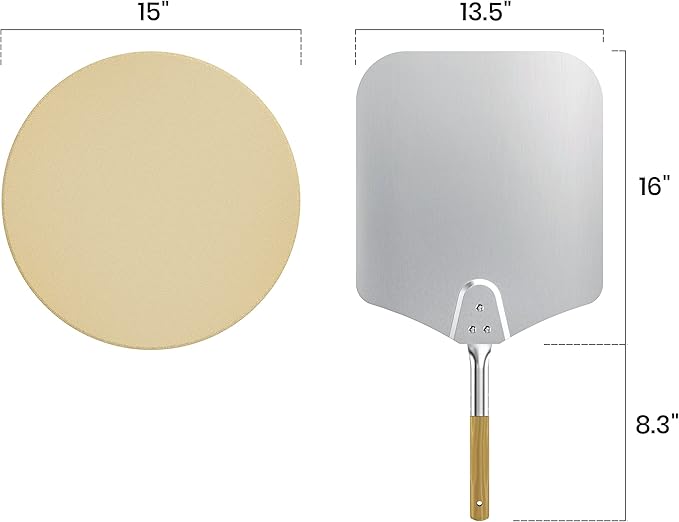 - Kit includes stainless a ring, 15" round pizza stone, pizza peel, and 4 support chips.(used to support your cooking grate)