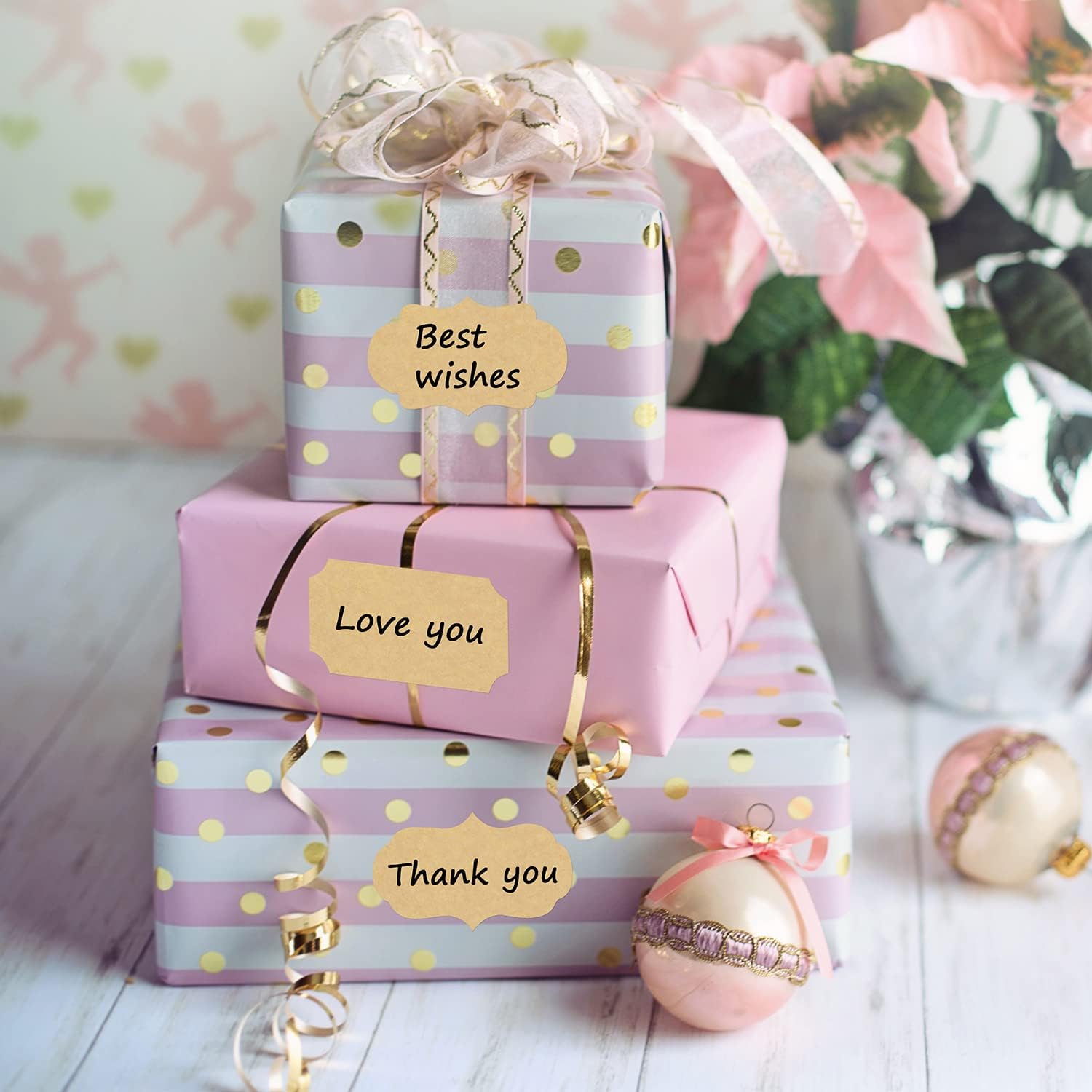 Wisdompro Fancy Shape Kraft Label Stickers, Self Adhesive Gift Tag Stickers Blank Writable Labels for Essential Oil Bottles, Jars, Food Containers (256 Pcs, Small)
