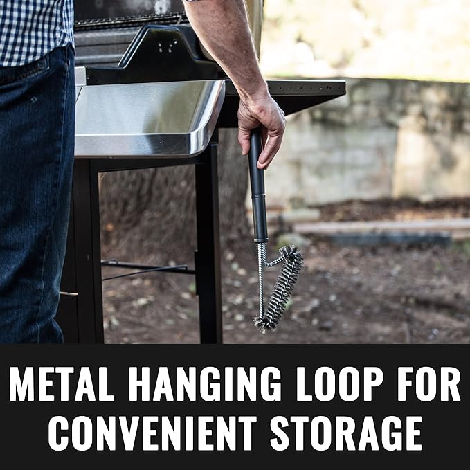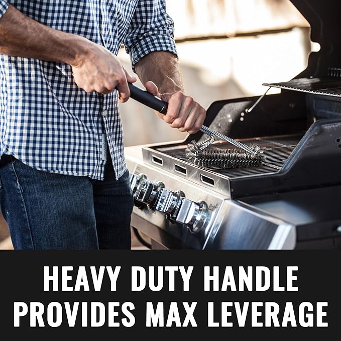 - Keep Your Hands Safe From the Heat: At eighteen inches long, the handle of our bbq grill brush was designed to keep your hands safe from the heat, and give you extra leverage so you can power through tough stuck on foods with ease. This means you’ll keep your hands out of the flames, and demolish burnt on foods like never before.