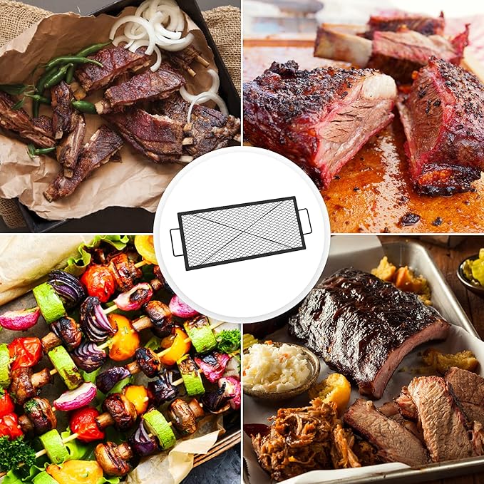 - Precision Mesh Structure: Engineered with a small diamond-shaped mesh pattern, the fire pit grill grate ensures that food stays securely in place without slipping through the openings, the "X-marks" style creates a delicious-looking sear on your meat and vegetables.