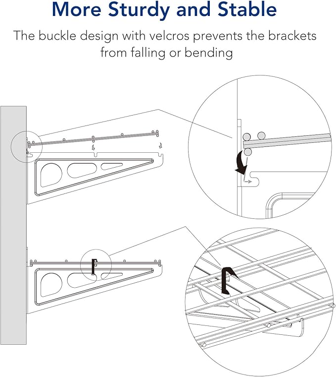 - Sturdy and Stable: High quality screws provided. All hardware has gone through strict testing. The buckle design with velcros prevents the brackets from falling or bending.