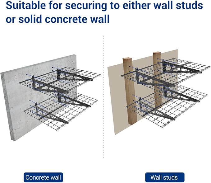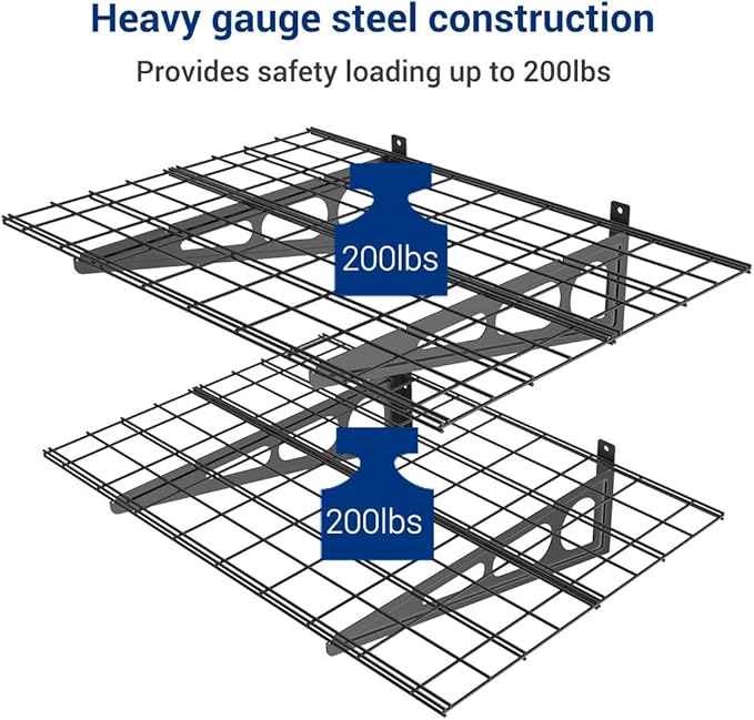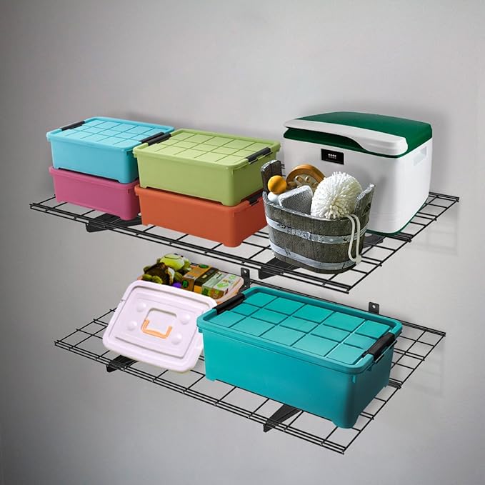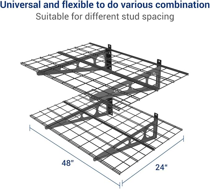 FLEXIMOUNTS 2 Pack 2x4ft Garage Shelving, Wall Shelf Garage Storage Rack, 24-inch-by-48-inch, Black