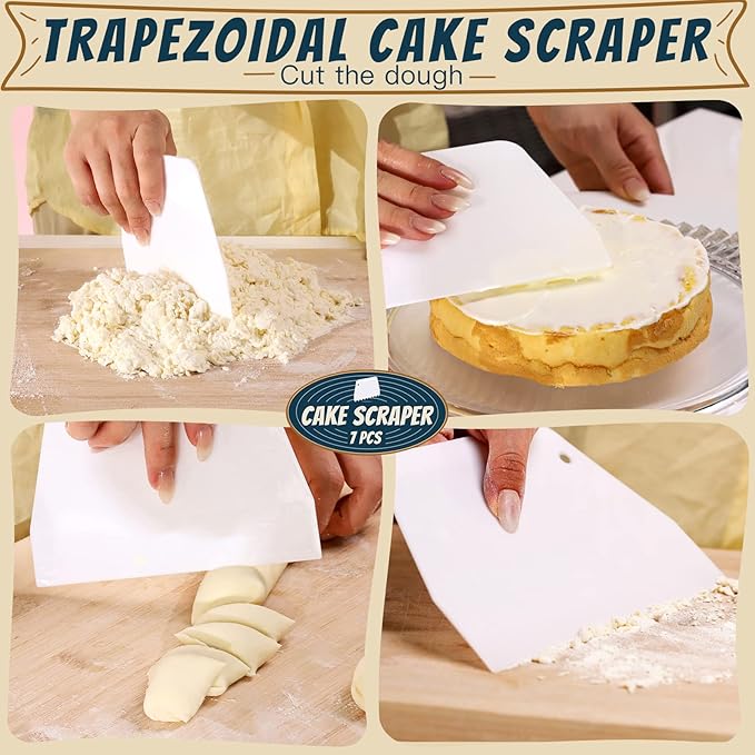 - Multi-Purpose Bench Scraper Kitchen: To DIY cakes, bread, chocolate, dough, and many other dessert. Use the cake scrapers to create various patterns and designs on your cakes, cupcakes, cookies, and more. Perfect for any baking enthusiast