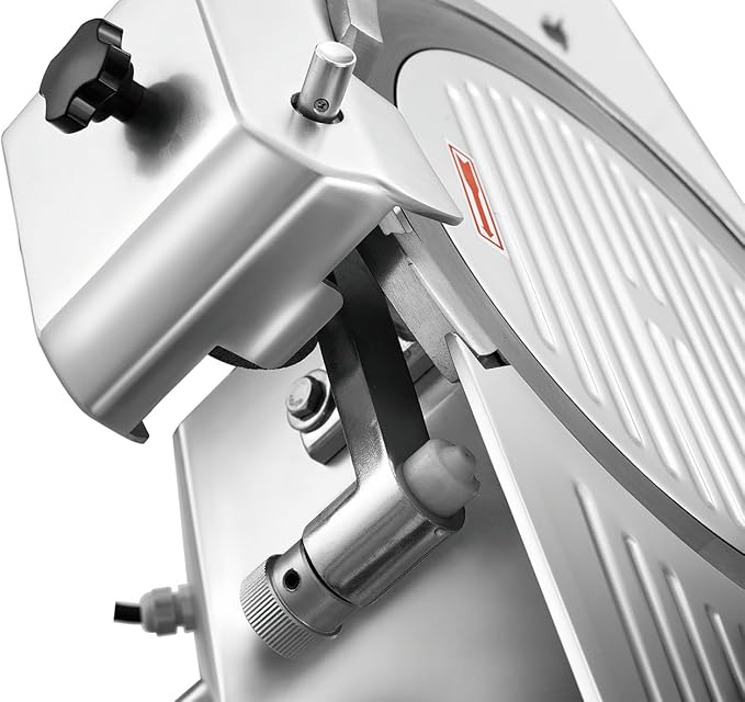 - Adjustable Cutting Thickness (0 - 0.6”): The convenient thickness adjustment control, along with the rear-mounted thickness stop, allows you to effortlessly adjust slicing thickness on the fly. This flexibility ensures you can cater to a variety of customer preferences, from paper-thin prosciutto to hearty slices of roast beef.