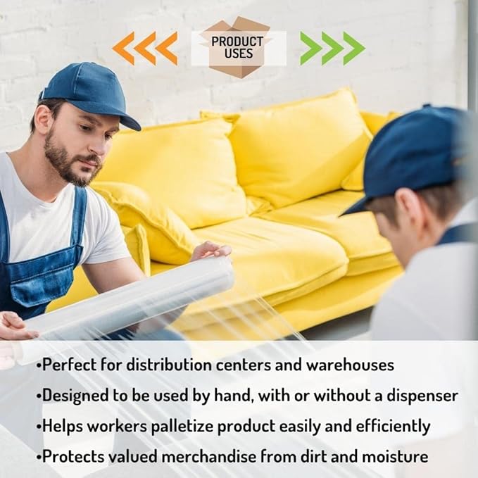 - VERSATILE APPLICATIONS: The pallet shrink wrap is perfect for securing furniture, boxes, and irregularly shaped items, making it ideal for moving, shipping, and long-term storage solutions.