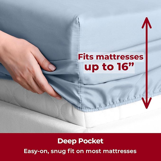- Perfect Fit & Certified Safe - Deep pockets fit mattresses up to 16" deep, making them ideal for memory foam toppers, air mattresses, and more. A sewn-in elastic band ensures a snug, secure fit. OEKO-TEX(R) STANDARD 100 certified (22.HUS.40891, Hohenstein), tested for over 1,000 harmful substances for your peace of mind.