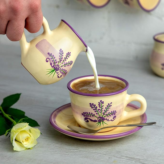 Handmade Lavender Floral Purple And Cream Small 150ml/5oz Ceramic Creamer, Milk Jug, Pourer, Pitcher Jug, Pottery Housewarming Gift for Tea Coffee Lovers by City to Cottage®