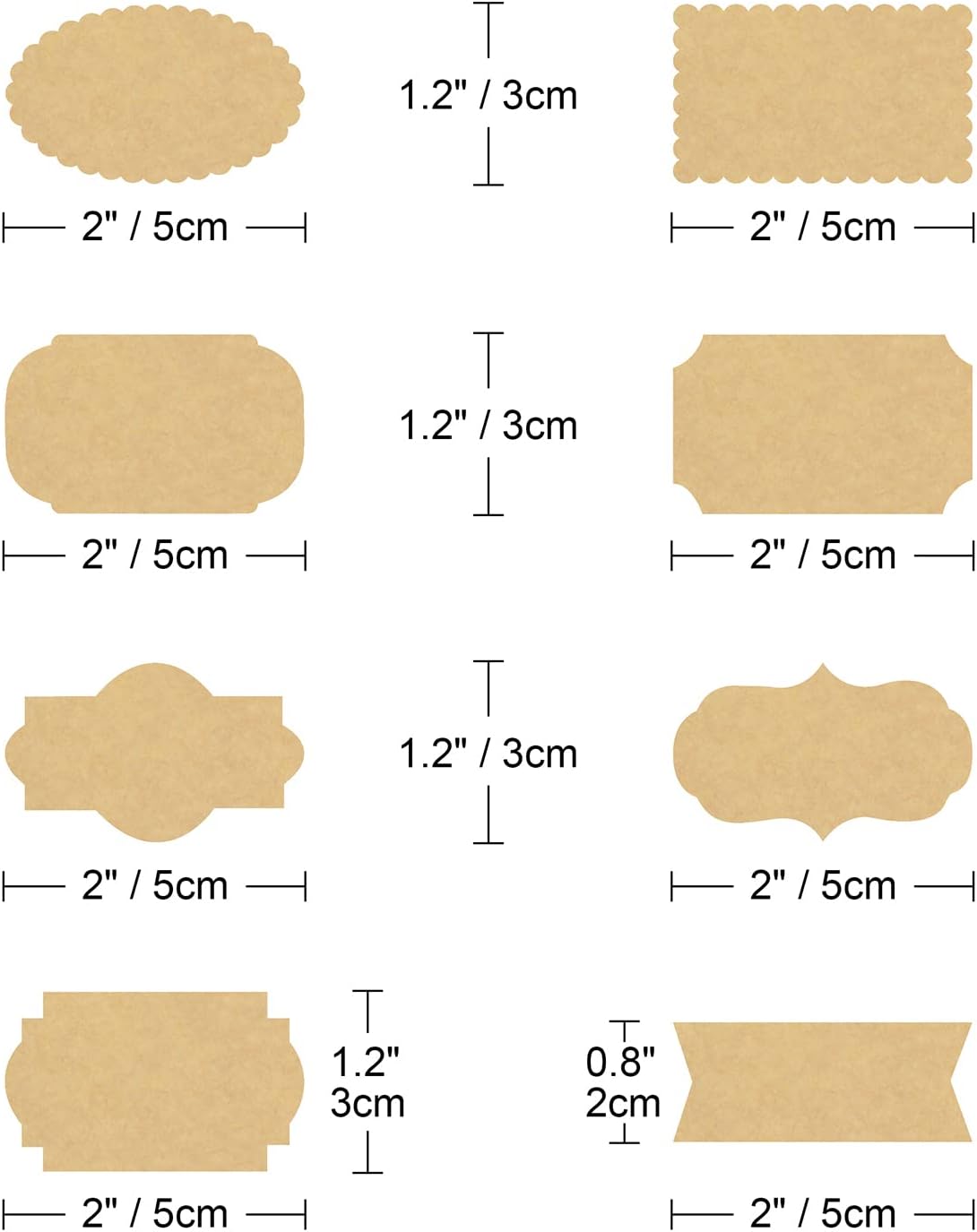 Wisdompro Assorted Shape Label Stickers, Self Adhesive Gift Tag Stickers Blank Writable Labels for Essential Oil Bottles, Jars, Food Containers (256 Pcs, Small)
