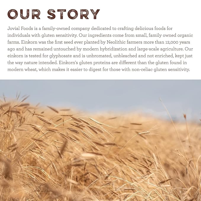 - 100% ORGANIC & NON-GMO - Einkorn is the only wheat that has never been hybridized. Jovial Einkorn Flour is USDA Certified Organic & Non-GMO Project Verified. It is not bromated, bleached, or enriched