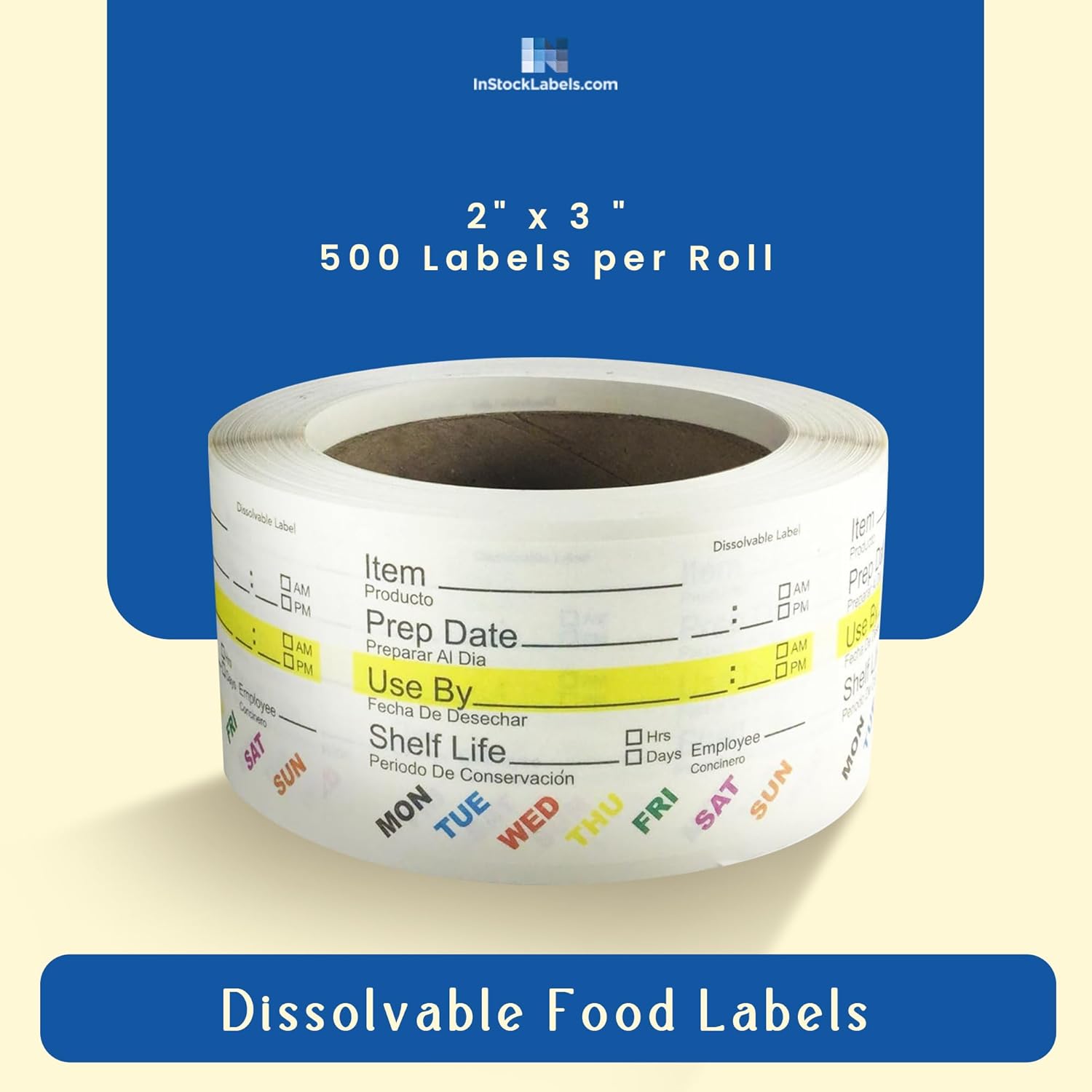 InStockLabels Dissolvable Food Labels - 2” x 3” (500 Labels) - Rotation Food Stickers for Kitchen & Restaurant Supplies - Ideal for Jar, Containers and Freezer Storage, Kitchen Stickers