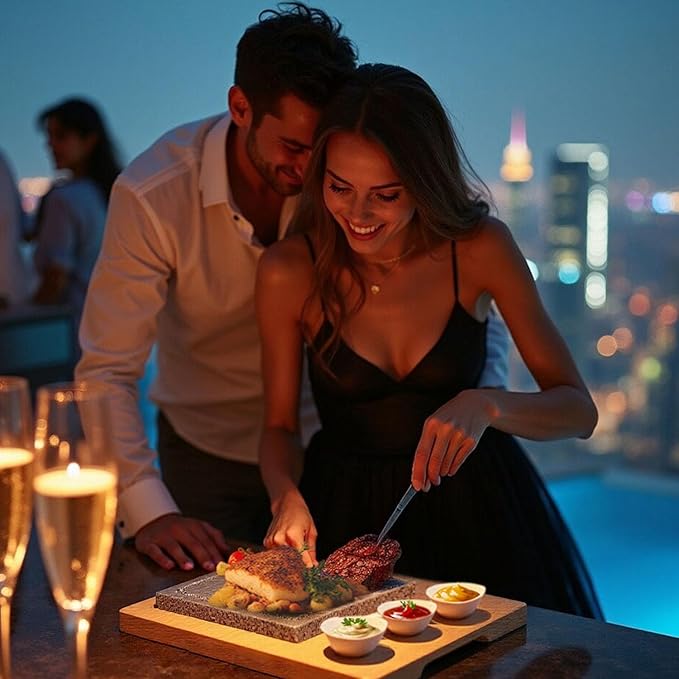 - DINE DIFFERENTLY - Elevate your dining experience with the Artestia steak cooking stone, creating an enjoyable evening for family and friends. Simply heat the stones in the oven - this kit includes two of them - to the recommended temperature, then then everyone cooks their meats to their liking right at the dinner table and some interesting conversations well into the night. This is not just a regular meal, it's an immersive experience that adds excitement to dinnertime