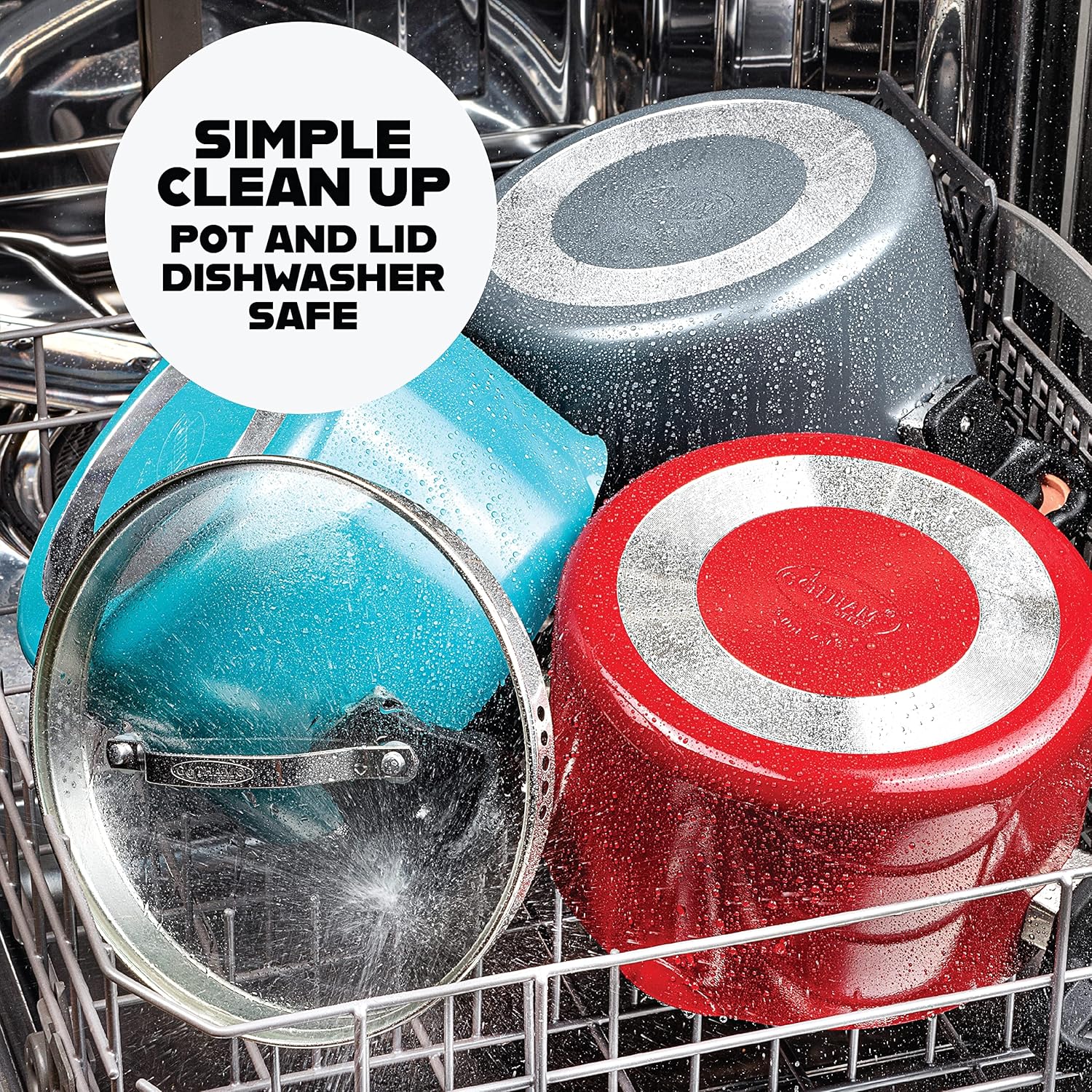 - EFFORTLESS CLEANUP, DISHWASHER SAFE: Spend less time with cleanup! After all the cooking and prepping is done, place cookware in the dishwasher for quick and easy cleanup.