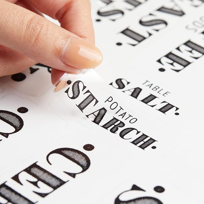 - Efficient Food Storage: Enhance your kitchen efficiency by applying these preprinted kitchen pantry labels to your preferred food storage containers. Suitable for tall glass jars, and pantry containers with lids, they contribute to a tidy and visually appealing workspace