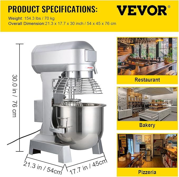 - Model Name : 30Qt 1100W 3 Speeds Adjustable 94/165/386 RPM Heavy Duty 110V