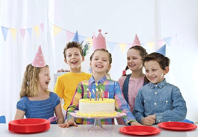 - Health & Safety: Our Red plastic plate set is made with food safe materials, ensuring the health and safety of your guests. Whether it's for a birthday party or a picnic, you can trust that these disposable plastic plates meet the highest standards of hygiene, providing peace of mind for you and your loved ones.