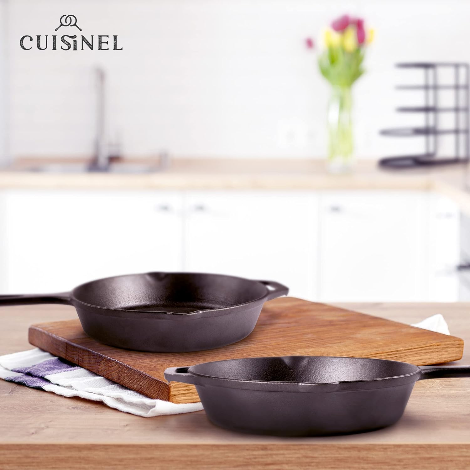 - TRUE COOKING VERSATILITY – The Cuisinel cast iron skillet pan can be used for frying, baking, grilling, broiling, braising, and sautéing meats, vegetables and more!
