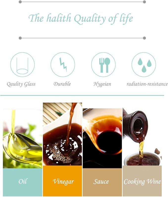 - Warrning: The item is made by glass, so we can't 100% ensure don't break when you receive this spice jar, So you can contact us when you receive break container. we will refund or replacement. Quality glass โ This oil olive vinegar bottle cruet dispenser is made of thick and quality glass which is health ,non-toxic and beautiful.