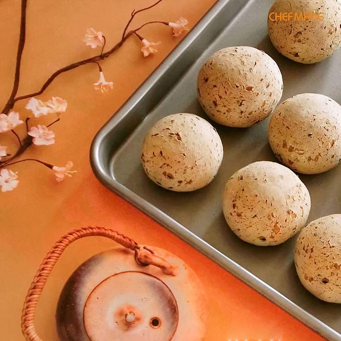CHEFMADE 17-Inch Baking Sheet Pan, Non-Stick Carbon Steel Rimmed Cookie Sheet Pan for Oven Roasting Meat Bread Jelly Roll Battenberg Pizzas Pastries 12.8" x 17.7" x 1.1" (Champagne Gold)