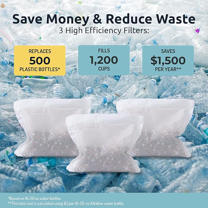 - IMPROVES TASTE & SMELL, EASY TO USE - Removes heavy metals, chlorine, and some fluoride to give you refreshing, great-tasting water. Whether it’s for drinking, cooking, brewing coffee, or tea, our filters are easy to use and reliable. Simply open the pouch, soak the filter, and enjoy purified alkaline water with utmost ease.