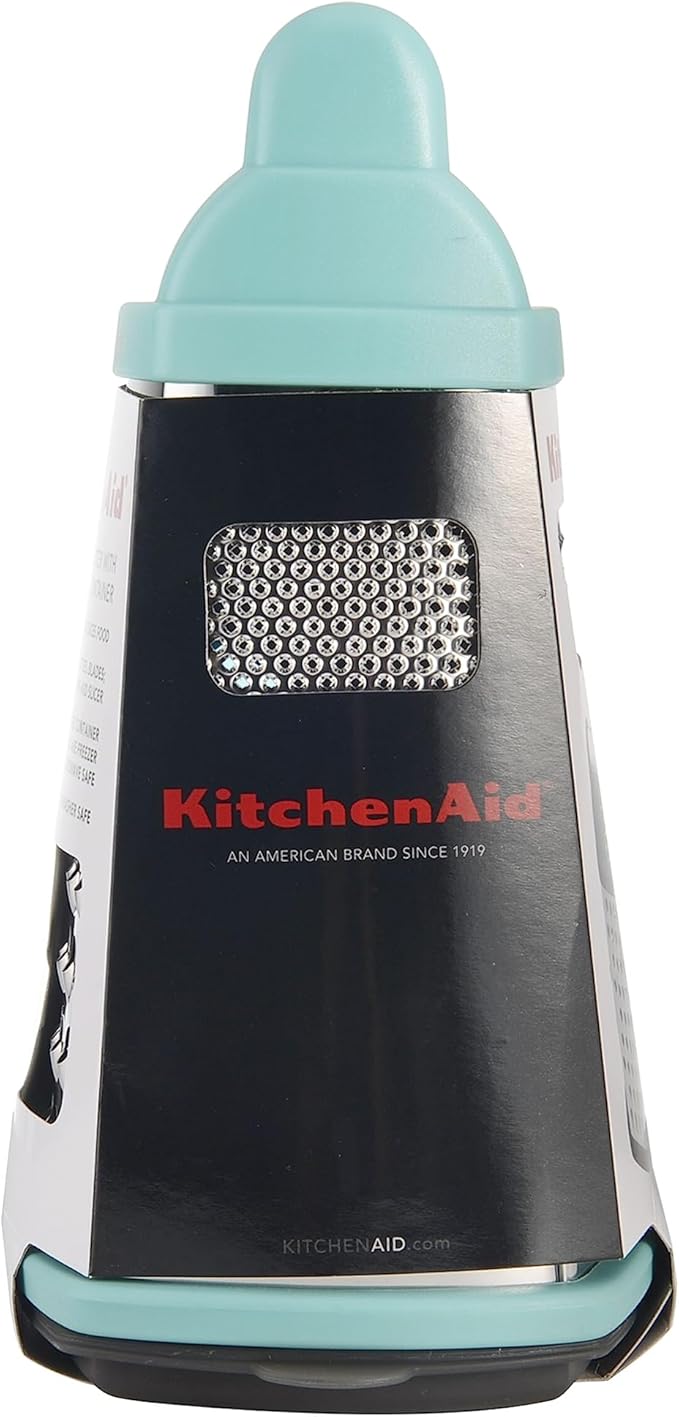 KitchenAid Gourmet 4-Sided Stainless Steel Box Grater for Fine, Medium and Coarse Grate, and Slicing, Detachable 3 Cup Storage Container and Measurment Markings, Dishwasher Safe, 10 inches tall, Aqua
