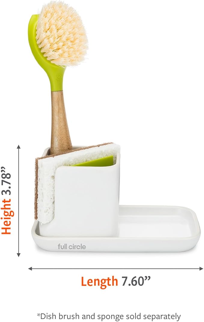 Full Circle Stash, Ceramic Kitchen Sink Caddy, Stylish Modular Sponge Holder & Dish Brush Organizer, Green and White, 11"
