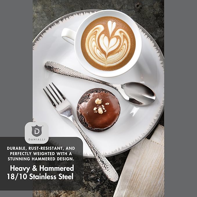 - Elegant Hammered Design – Add a touch of sophistication to your table with this flatware set’s eye-catching hammered handles, designed to impress guests and elevate everyday meals.