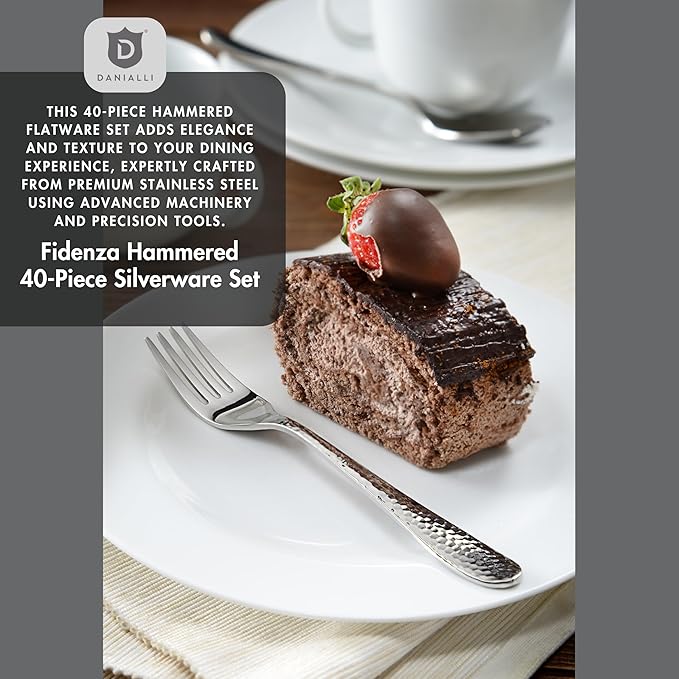 Hammered Silverware Set | Premium 18/10 Stainless Steel Flatware Service for 8 | Heavy-Duty & Dishwasher Safe | Built to Last (40-Piece, Fidenza Hammered)