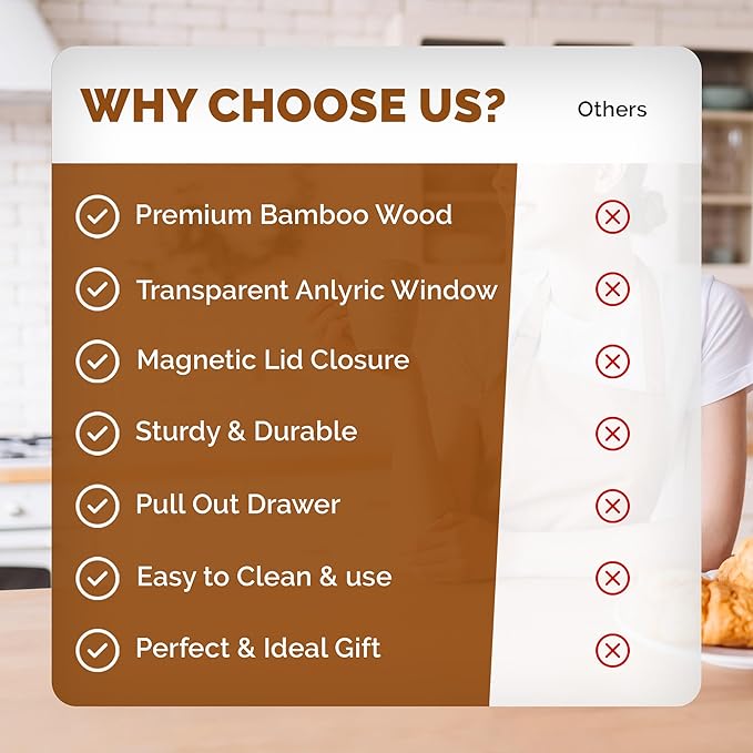 - NATURAL BAMBOO WITH ECO-FRIENDLY DESIGN: Crafted from sustainable bamboo, this tea storage box is durable, moisture-resistant, and designed to last. Its natural bamboo finish adds a touch of elegance, blending seamlessly with any kitchen decor while being an eco-friendly choice