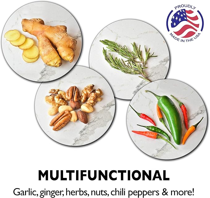 - [ MULTIFUNCTIONAL ] Handheld Kitchen Tool that can mince all kinds of ingredients, from garlic, to ginger, herbs, nuts and more! [ INSTRUCTIONS ] Use the Garlic Twister to "Smash" the garlic clove and loosen the skin for peeling (see video) this also softens the garlic. Place 2-3 cloves in the unit, and progressively twist while working your way down. Expect minced bits mixed with juices to come out!