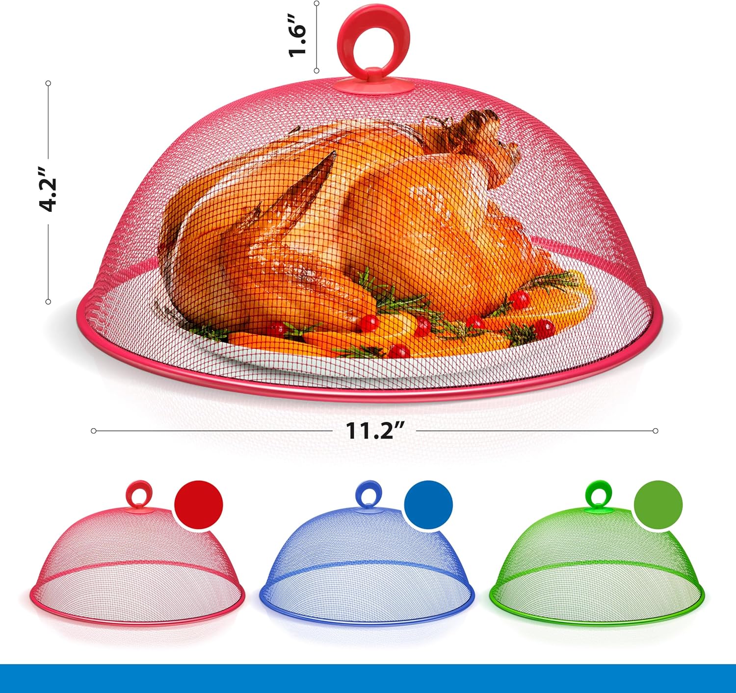 - Moderate Size: The food covers measures 10.75" Diameter x 3.75" Depth. Covers stuffed plates / bowls of 10.7" Diameter and 3.7" height (height refers to the height of the food inside ex. stuffed plate/bowl) our food covers will definetly be a hit being a quarter inch heigher then the other galvanized covers on the market making it a a better fit for your picnic plate covers. it is also upgraded with a stronger rim to keep sturdy from the winds.